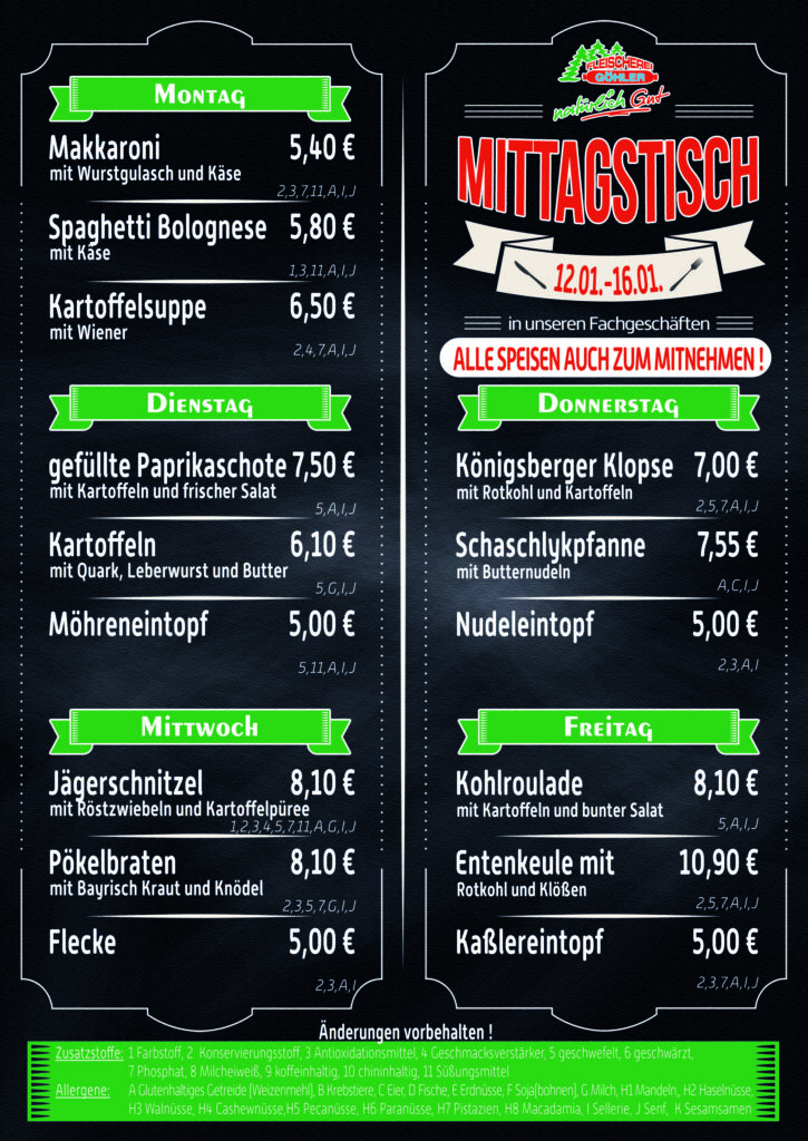 Speiseplan unserer anderen Fachgeschäfte